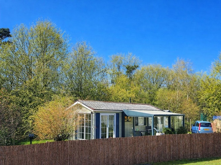 Voordeel van deze chalet, deze ligt nagenoeg gelijk aan de grond. Je hebt dus geen opstapje.(gunstig voor ouderen)